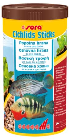 Η sera Cichlids Sticks είναι η βασική τροφή που αποτελείται από προσεκτικά κατασκευασμένα sticks για τις μεγαλύτερες, παμφάγες κιχλίδες (αυτό περιλαμβάνει πολλά ΝοτιοΑμερικάνικα είδη) και άλλα μεγάλα ψάρια.