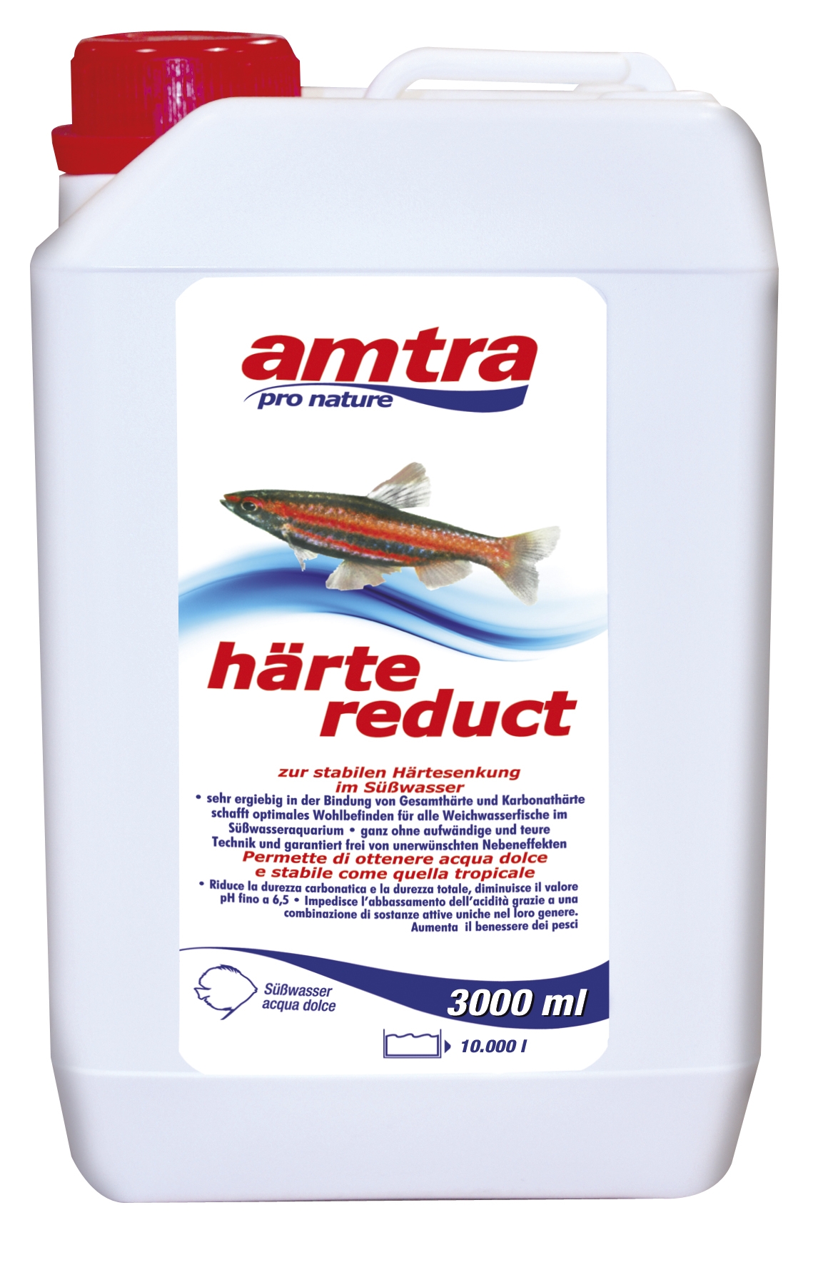 For the stable reduction of hardness in fresh water. Effective in binding up total and carbonate hardness • creates optimal conditions for all soft-water fishes kept in the freshwater aquarium • without any need for expensive equipment and guaranteed free from undesirable side effects. Dosage: depending on the initial hardness and the degree of reduction required, 5 – 25 ml per 100 litres if aquarium water. As a general rule of thumb, 1 ml/100 l reduces the total hardness by 1°dGH. Even at a lower dosage härte reduct will display its positive effects.