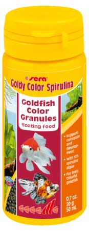 Η sera Goldy Color Spirulina είναι η τροφή ενίσχυσης χρώματος που αποτελείται από προσεκτικά κατασκευασμένους κόκκους για μεγαλύτερα χρυσόψαρα, ιδιότροπα ψάρια με φανταχτερά χρώματα και άλλα σχολαστικά ψάρια του κρύου νερού.