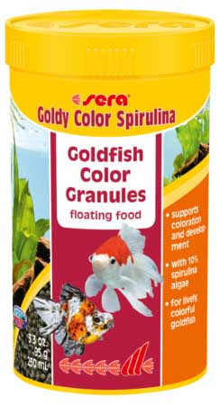 Η sera Goldy Color Spirulina είναι η τροφή ενίσχυσης χρώματος που αποτελείται από προσεκτικά κατασκευασμένους κόκκους για μεγαλύτερα χρυσόψαρα, ιδιότροπα ψάρια με φανταχτερά χρώματα και άλλα σχολαστικά ψάρια του κρύου νερού.