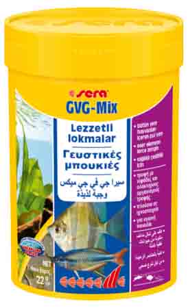 Η τροφή sera GVG-Mix είναι ένα υπέροχο μείγμα από προσεκτικά κατασκευασμένες νιφάδες και από αφυδατωμένα ολόκληρα ζώα. Οι νιφάδες πληρούν βέλτιστα τις φυσικές απαιτήσεις, ενώ τα ζώα προσδίδουν ευπρόσδεκτη ποικιλία.