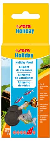 sera Holiday is the holiday food consisting of carefully manufactured food tablets which is readily accepted by most ornamental fish.