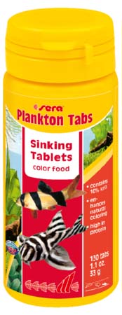 Οι sera Plankton Tabs είναι η γευστική τροφή για την ενίσχυση του χρώματος που αποτελείται από προσεκτικά παρασκευασμένη τροφή σε μορφή ταμπλέτας για όλα τα ψάρια που τρώνε στον πυθμένα(όπως γατόψαρα, loaches κ.α.) και τα ασπόνδυλα γλυκού και θαλασσινού νερού.