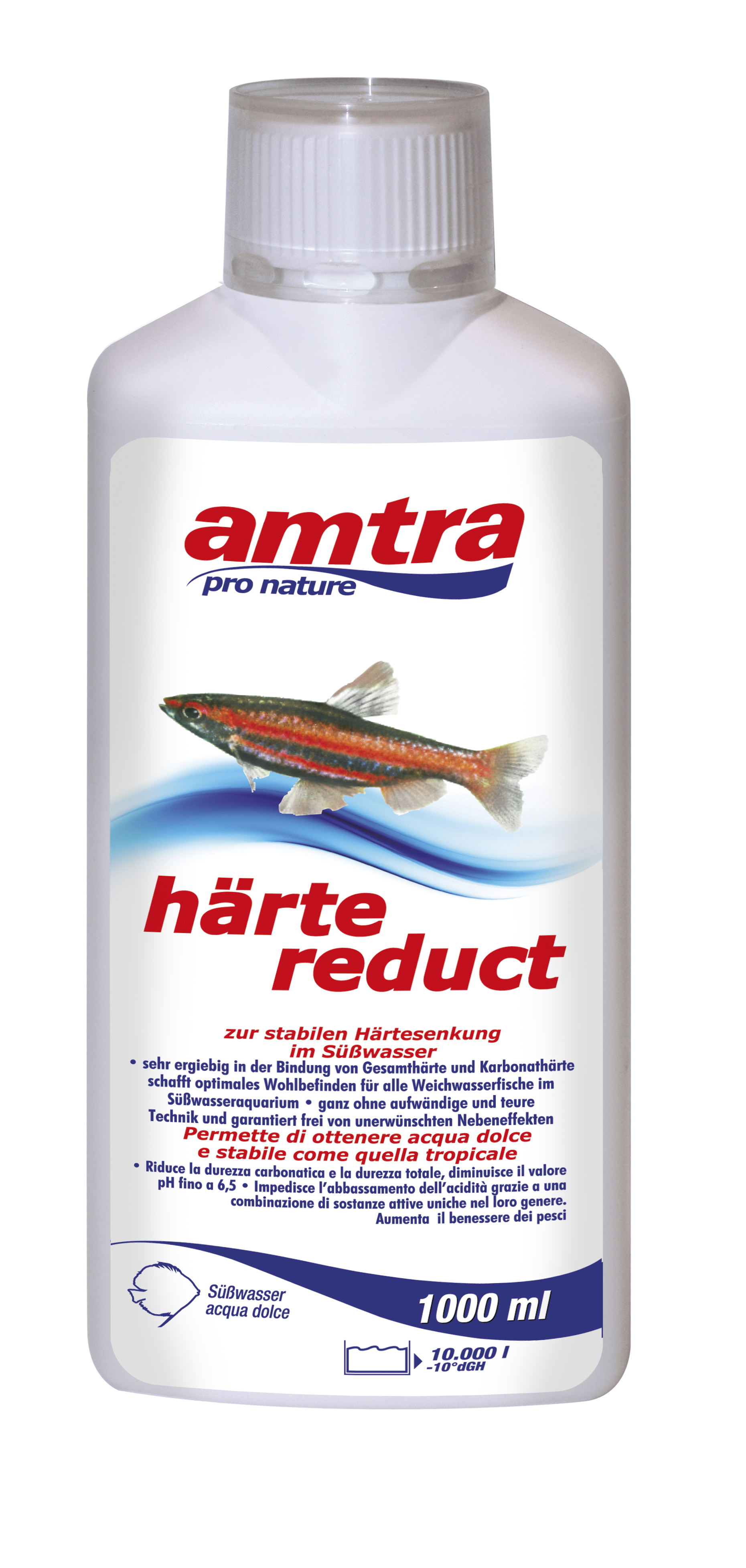 For the stable reduction of hardness in fresh water. Effective in binding up total and carbonate hardness • creates optimal conditions for all soft-water fishes kept in the freshwater aquarium • without any need for expensive equipment and guaranteed free from undesirable side effects. Dosage: depending on the initial hardness and the degree of reduction required, 5 – 25 ml per 100 litres if aquarium water. As a general rule of thumb, 1 ml/100 l reduces the total hardness by 1°dGH. Even at a lower dosage härte reduct will display its positive effects.