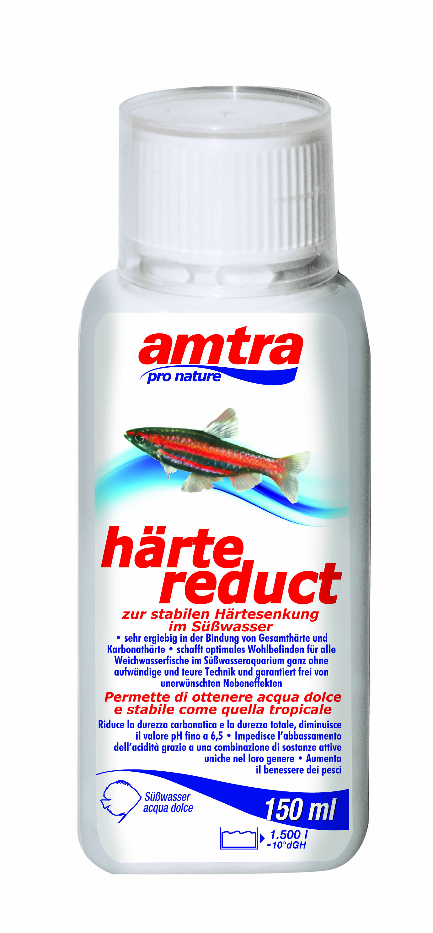 For the stable reduction of hardness in fresh water. Effective in binding up total and carbonate hardness • creates optimal conditions for all soft-water fishes kept in the freshwater aquarium • without any need for expensive equipment and guaranteed free from undesirable side effects. Dosage: depending on the initial hardness and the degree of reduction required, 5 – 25 ml per 100 litres if aquarium water. As a general rule of thumb, 1 ml/100 l reduces the total hardness by 1°dGH. Even at a lower dosage härte reduct will display its positive effects.