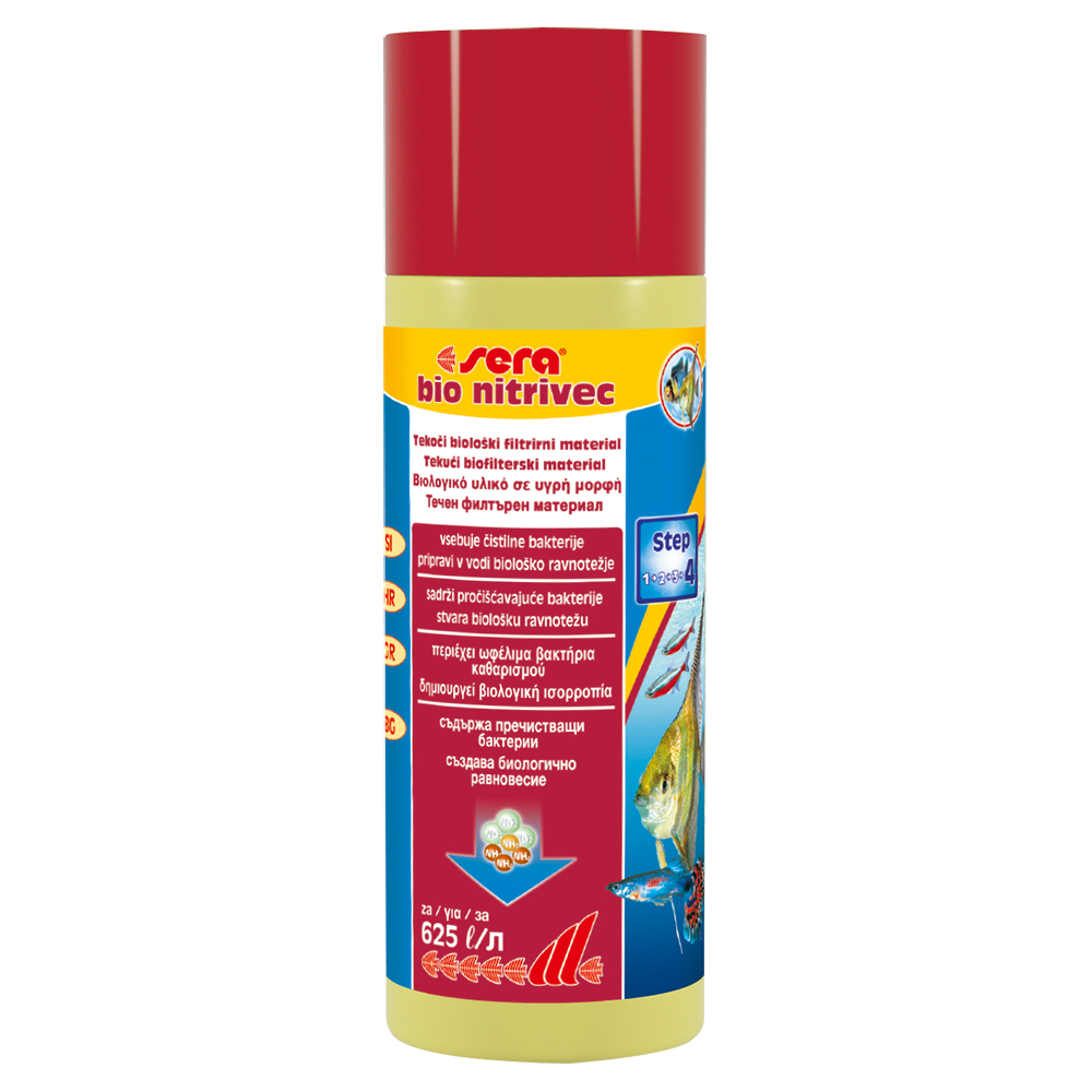 Το sera bio nitrivec, ένα προϊόν βιοτεχνολογίας από την sera, περιέχει εκατομμύρια βακτήρια καθαρισμού, μέσω των οποίων δημιουργείται γρήγορα και αξιόπιστα η βιολογική ισορροπία, που βοηθά την συνεχή διάσπαση των τοξικών ουσιών που δημιουργούνται.