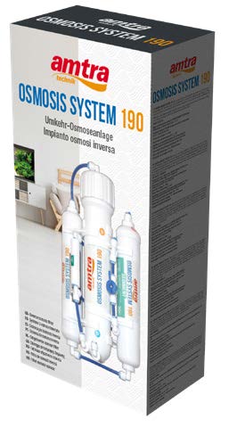 AMTRA OSMOSIS SYSTEM 190 uses replaceable Sediment, Carbon and RO Membrane cartridges. The Sediment and Carbon cartridges are self-contained pre-filters that remove particulate matter and some compounds found in the water supply, including chlorine. The RO Membrane is located in the central canister, separating the water into a more purified water and a concentrated waste water.