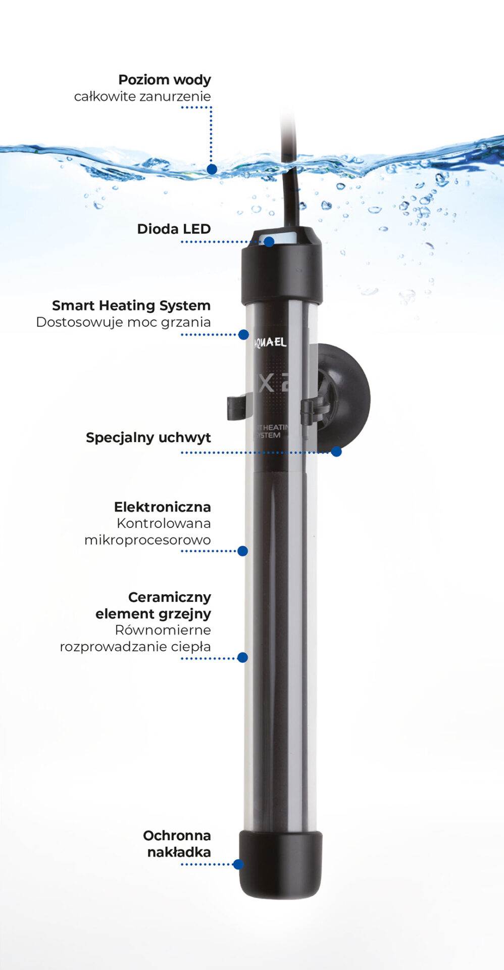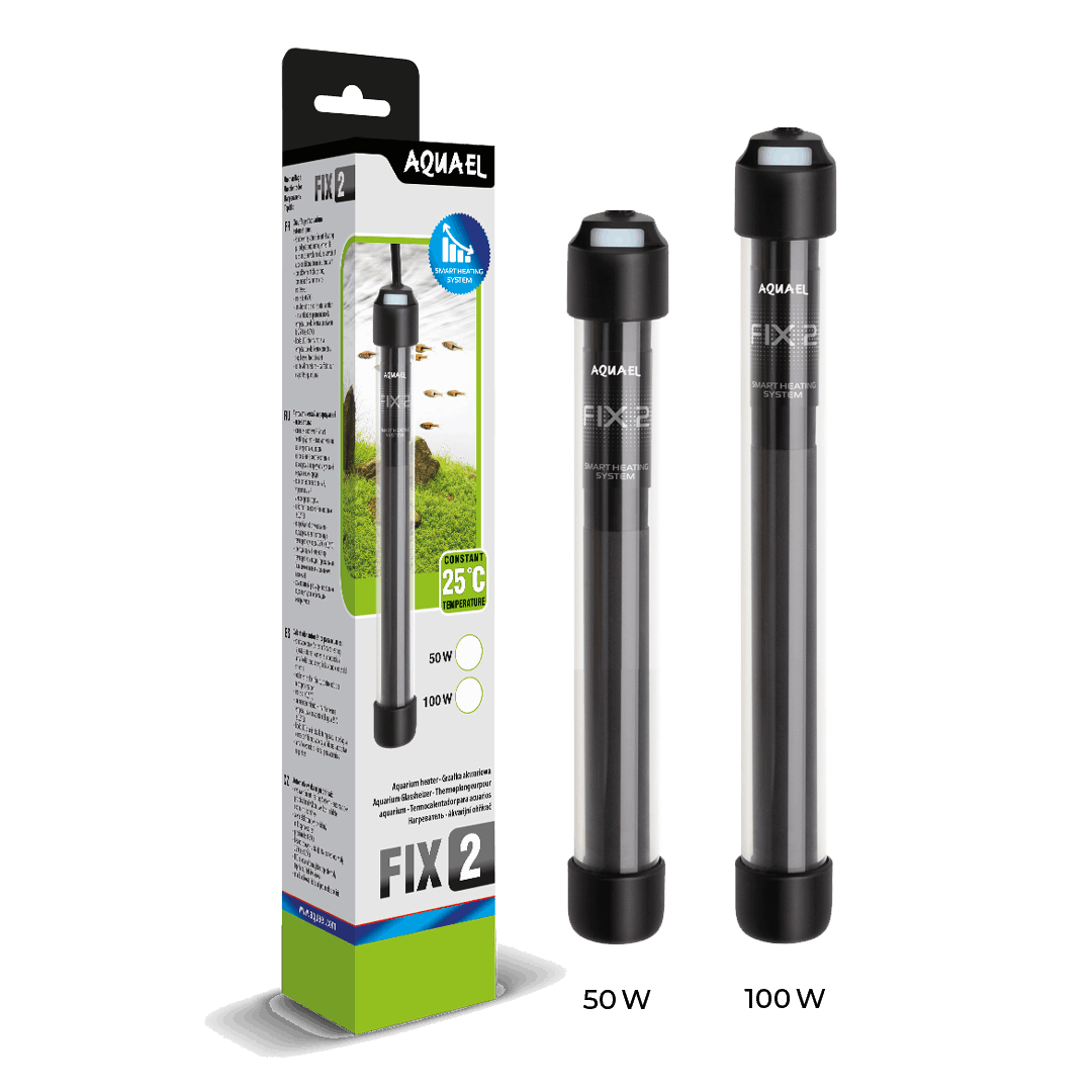 Fix 2 is an electronic, glass heater for aquaria. With its compact size, it is perfectly suitable for small and medium size tanks. The heater automatically maintains the water temperature at 25°C. It also features a Smart Heating System (SHS) – a smart power adjustment technology. A built-in microprocessor adjusts the heating power to maintain the desired temperature in the aquarium and prevents sudden temperature changes.