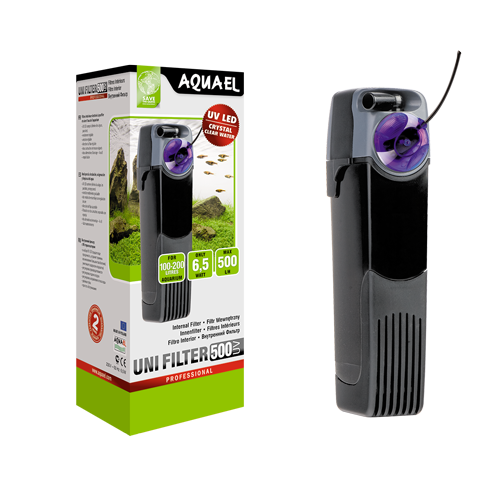 AQUAEL UNIFILTER UV is designed for the cleaning and aeration of aquarium water. Apart from efficient water filtration, the device sterilises water using ultraviolet LEDs. This prevents the growth of floating algae, protozoa and bacteria, which results in increased water clarity and a healthier environment for fish. UV LEDs can be switched on and off independently of the filter. UNIFILTER UV is easy to operate. Its performance can be adjusted by means of the dial formed by the rotor dome. The direction of water outflow can be changed by up to 90°.