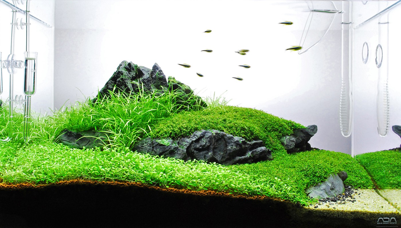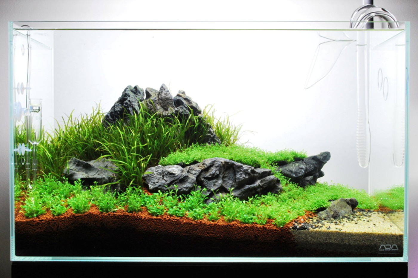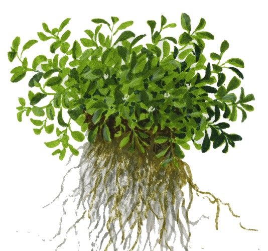 Glossostigma elatinoides from New Zealand is much in demand in Japanese-inspired aquariums. It is one of the smallest aquarium plants (2-3 cm tall), and thus a good foreground plant. A difficult plant demanding a lot of light. Grows upwards if light is poor. Make sure larger plants do not overshadow it. When planting in the aquarium small clumps (approx. 1/8 pot) should be placed at intervals of a few centimetres to help the plants grow together more quickly. CO2 addition and soft water promote growth significantly.