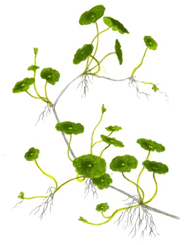 Unlike other Hydrocotyle species, this plant retains its trailing growth form. Verticillata originates from America and becomes 3-7 cm tall. Optimum growth is only achieved in strong light and soft, slightly acidic water. It does not need to be rooted, but can be used as a floating plant. Hydrocotyle verticillata is definitely a foreground plant which can also be used in garden ponds. It can also be used as an indoor plant if the soil is kept moist.